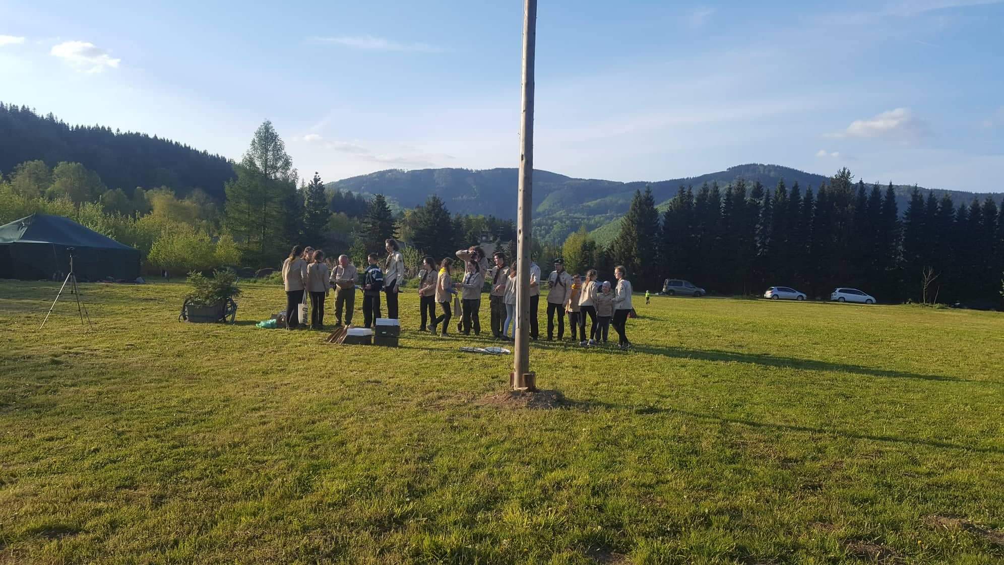 Ve středu 8. května jsme přijeli na Morávku, kde se konaly okresní závody. Z našeho střediska se zúčastnily tři družinky- jedna holčičí, ve které byly Verča, Aňa, Kača, Kika, Natka a Viky. A dvě klučičí. V první byl Petr, Honza, Kryštof a Dan, v té druhé jsem byl já, Jirka, Jožka, Vilda a Richard.