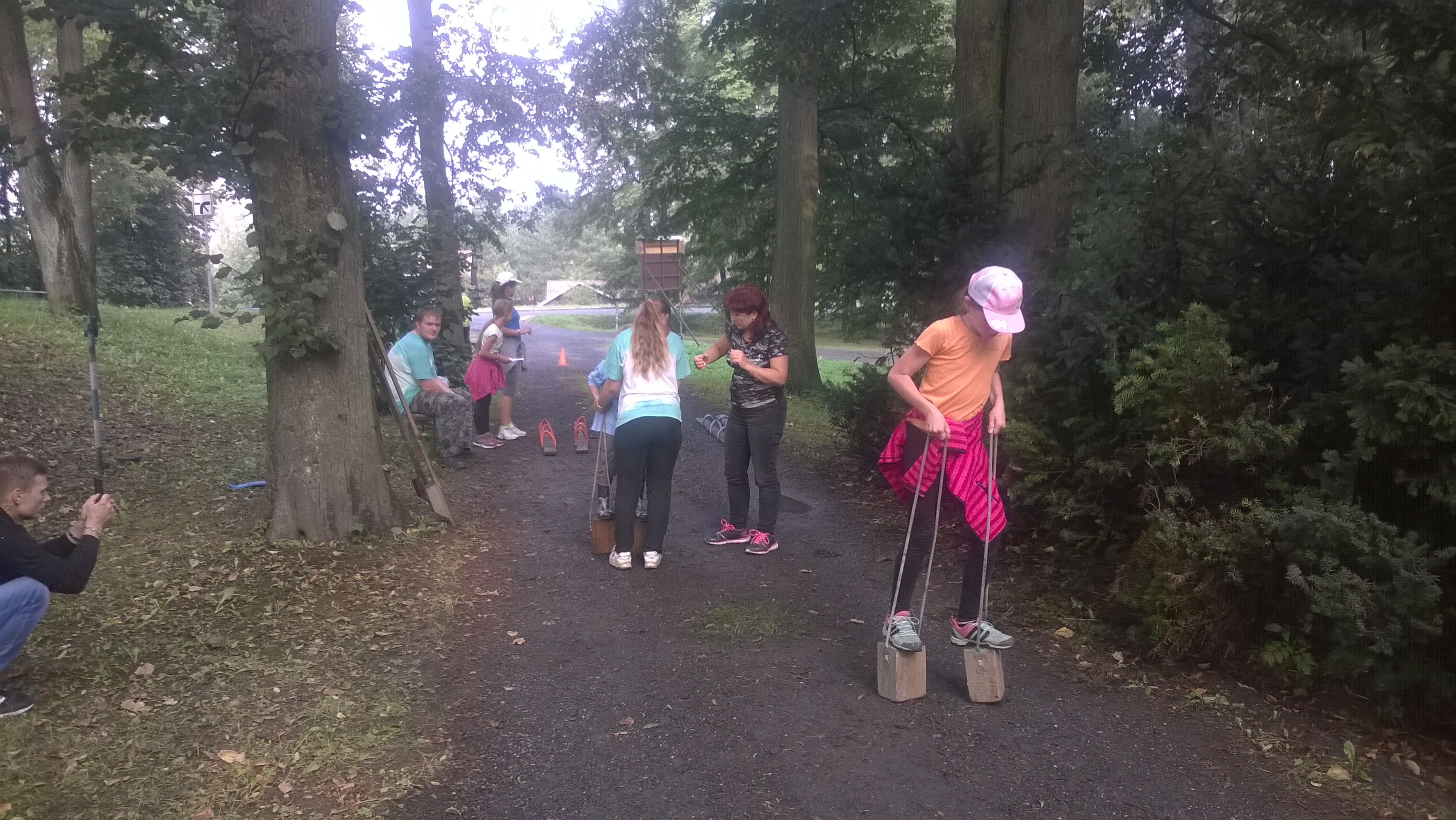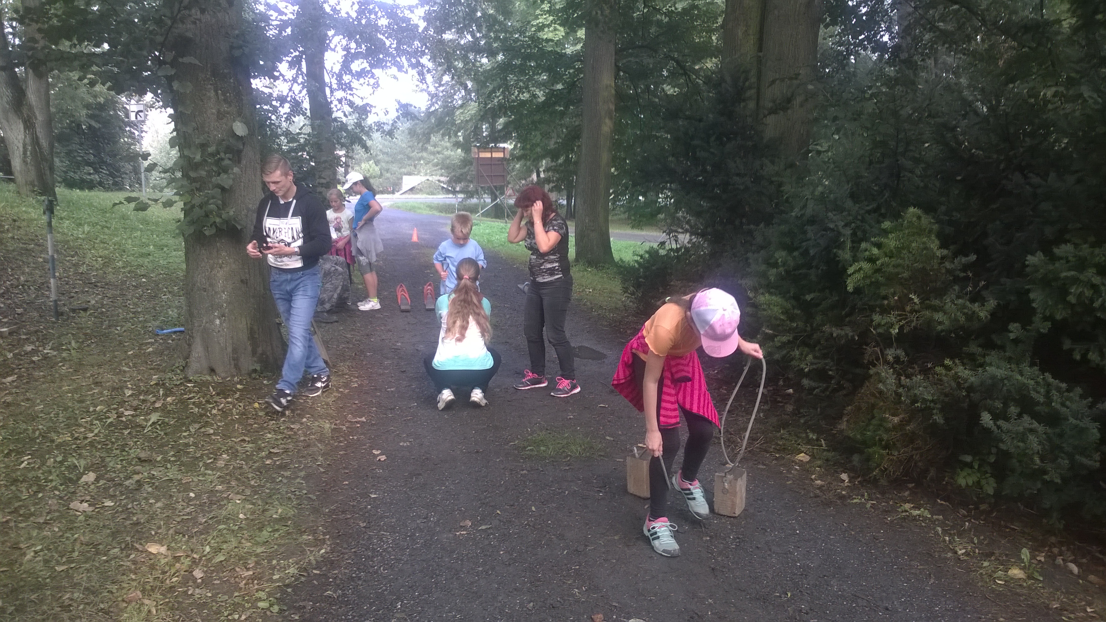 Po vystartování se naše pětičlenná skupinka vydala na první stanoviště. Úkol byl zjistit, co je na připraveném kroji špatně nebo co tam chybí a opravit to. S tím jsme neměli problém, až na to, že Vilda bodl Jirku jehlou do nohy a ten celkem nahlas zařval, ale naštěstí si toho rozhodčí nevšiml 🙂 Na dalším stanovišti jsme měli za úkol rozeznat rostliny, chvíli jsme si připadali jako botanici. Bohužel jsme dvě květiny spletli, ale zůstali jsme pozitivní. Kimovka. Rozhodčí nám řekli, že si na cestě máme všímat věcí, které do lesa nepatří a pak jim všechny objekty říct. Úplná pohodička. Řekli jsme jim dokonce více, než chtěli 🙂 Následovala krizová situace. Měli jsme rozhodnout, jak se zachováme v případě bouřky. Ajéje, zručnost. Museli jsme rozdělat oheň tak, aby přepálil natažený provázek. Už jsme cítili, že se blížíme do cíle, čekalo nás jen poslední stanoviště- střelba ze vzduchovky. Většina ran šla přímo do terče.